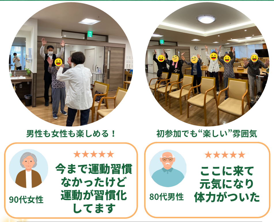 ご参加いただいた方から「体力がついてきた」「運動が習慣化してきた」「AIで歩行状態を見える化してもらえ、運動教室の効果が目で見てわかるため続けやすい」とお喜びの声を多数いただいたおります。